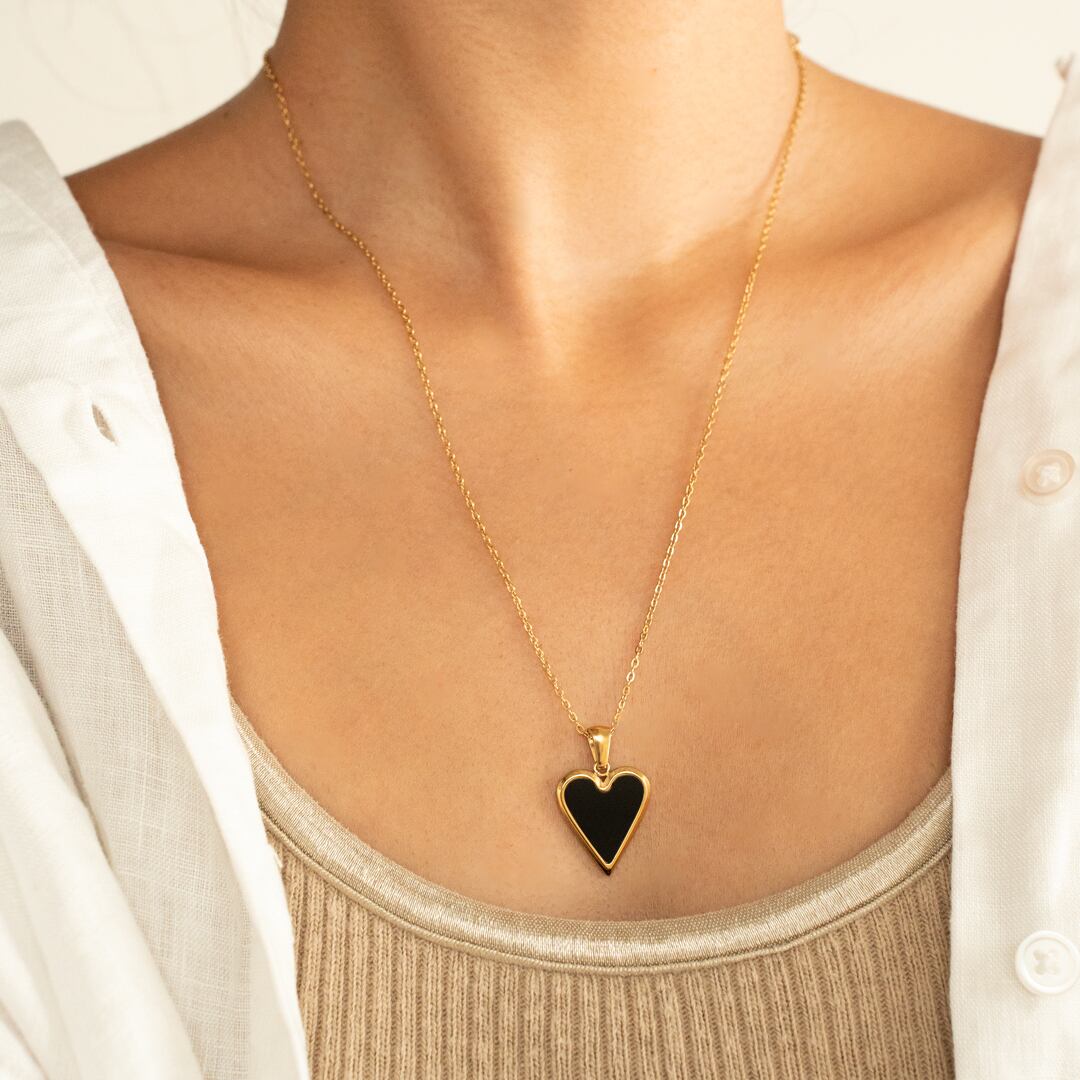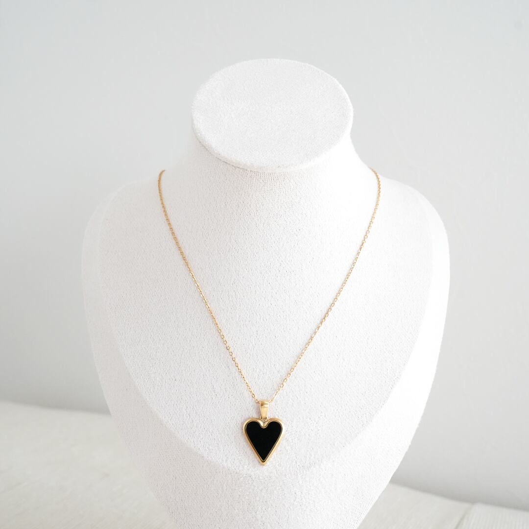 金属アレルギー対応のトップのブラックのハートが可愛いネックレスです♡