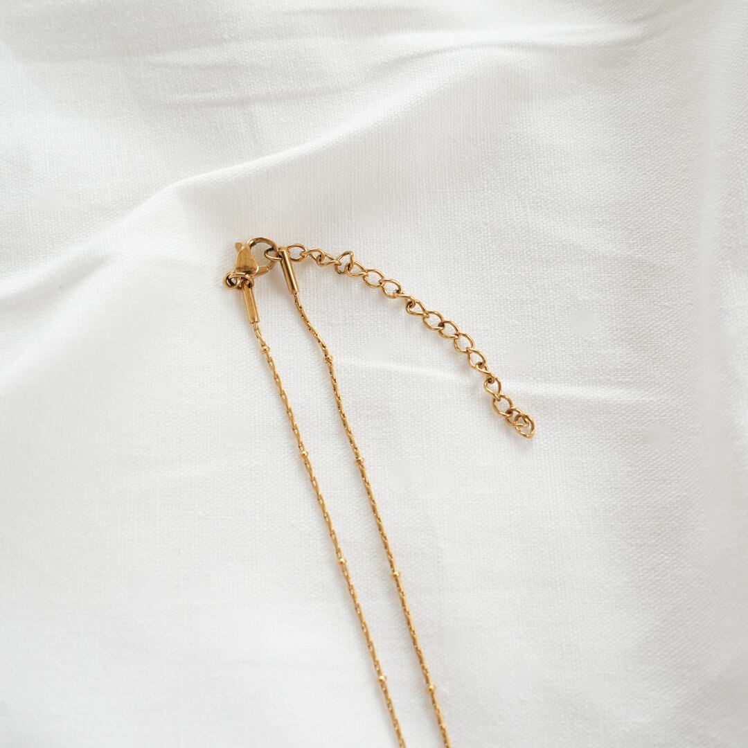 他のネックレスと重ね付けるのもおすすめで、カジュアルなお洋服やシンプルなお洋服にも明るい印象を与えてくれます♪