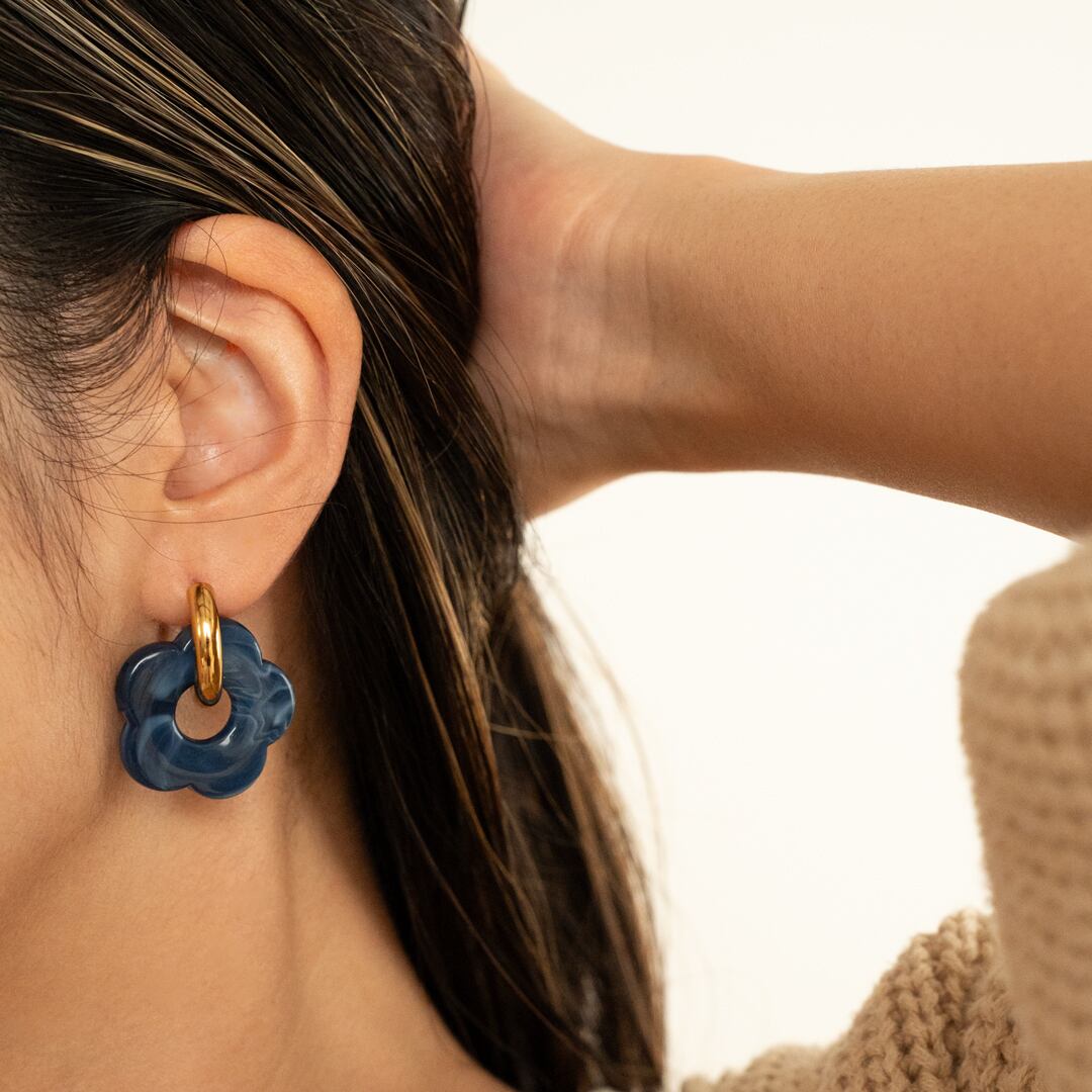316L サージカルステンレス フープフラワーピアス#ネイビー