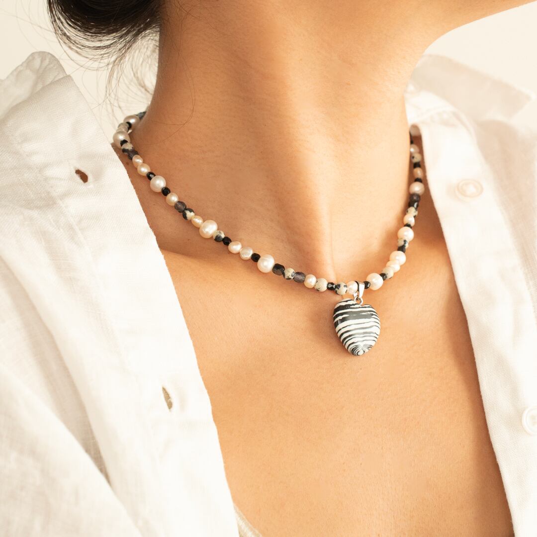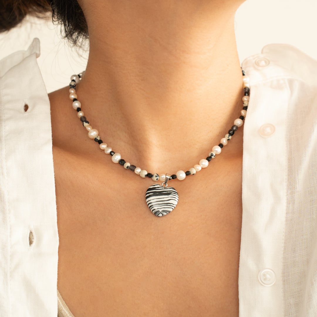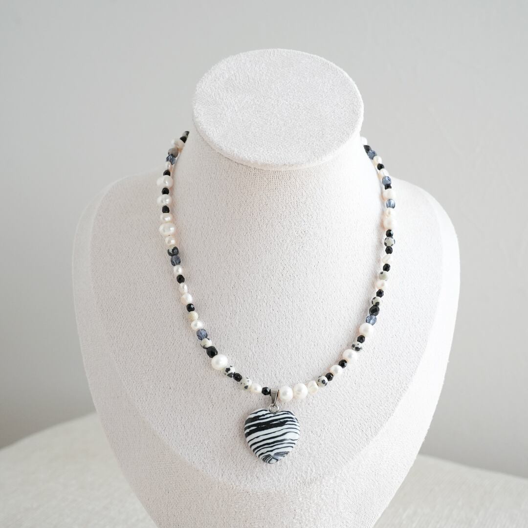 天然石/淡水パール・ハートチャームネックレス(BLACK)