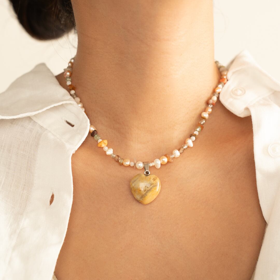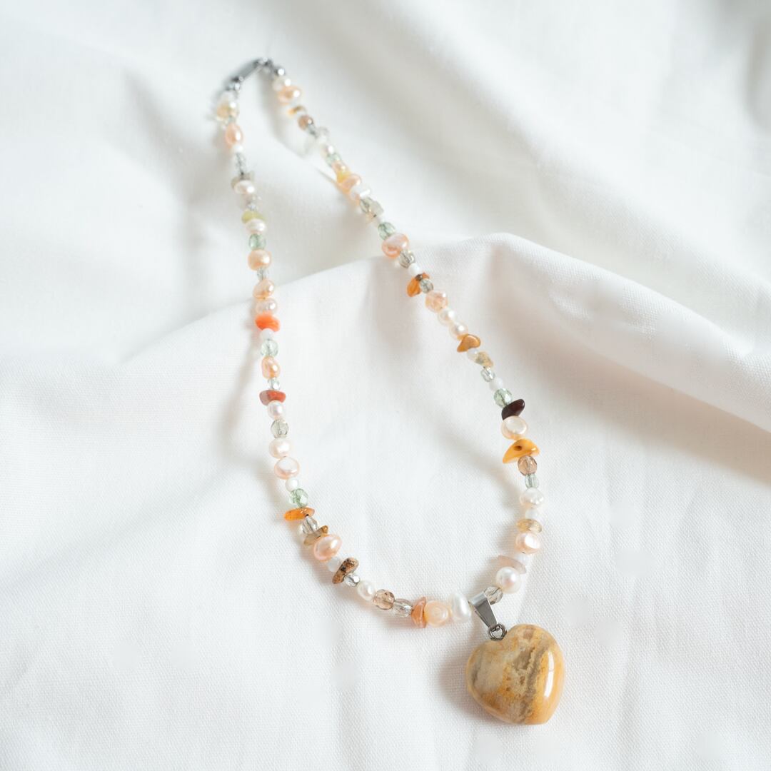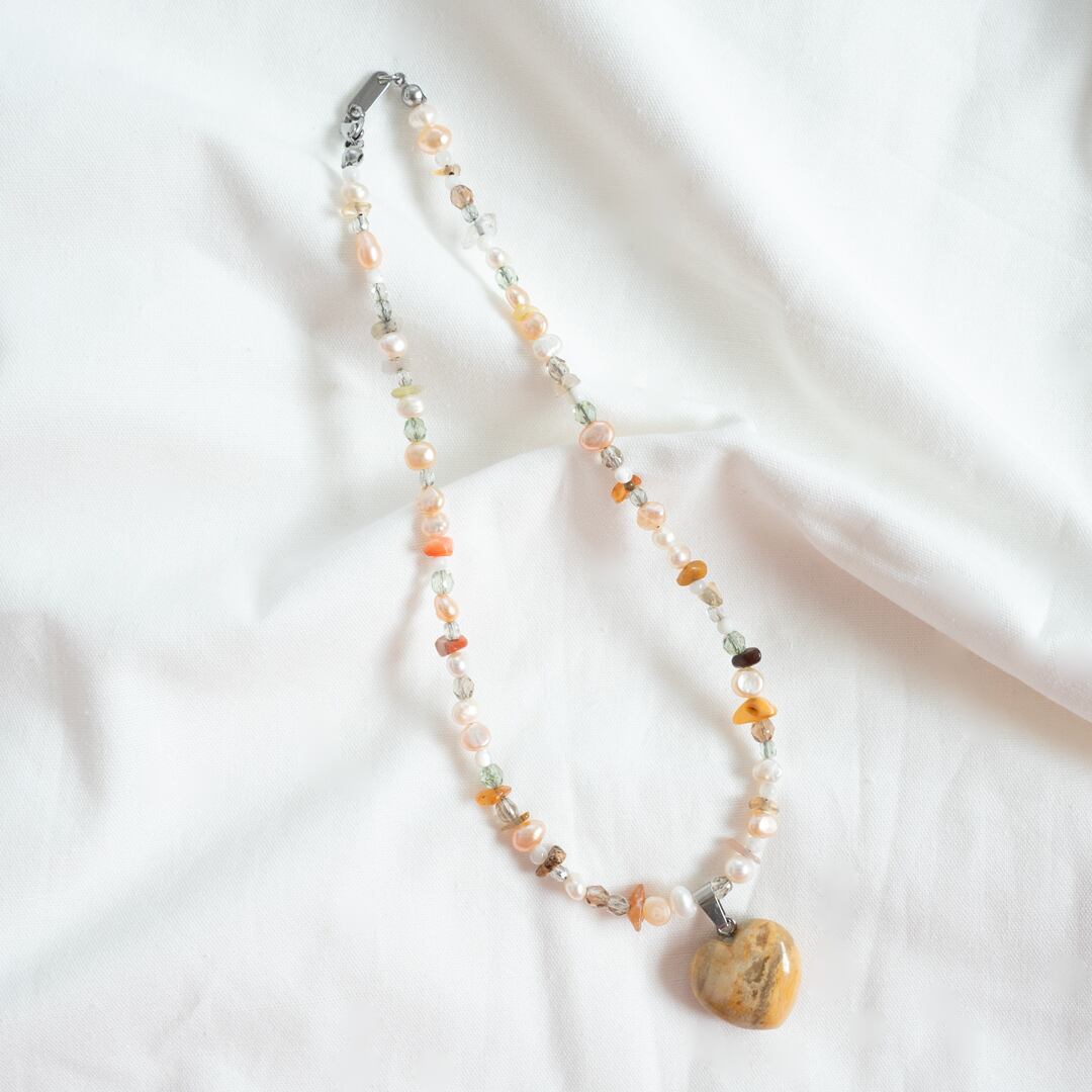 天然石/淡水パール・ハートチャームネックレス(YELLOW)