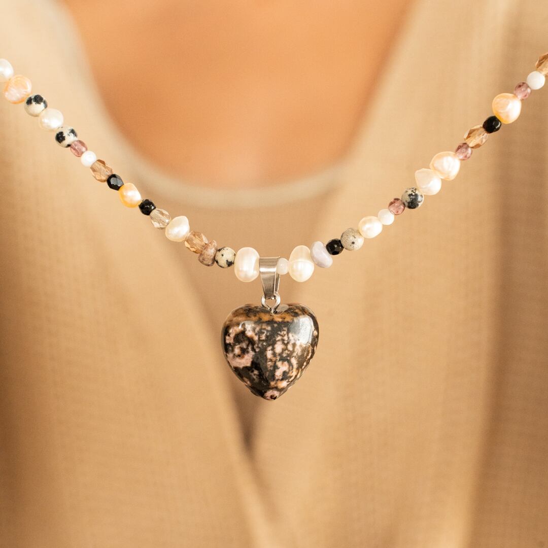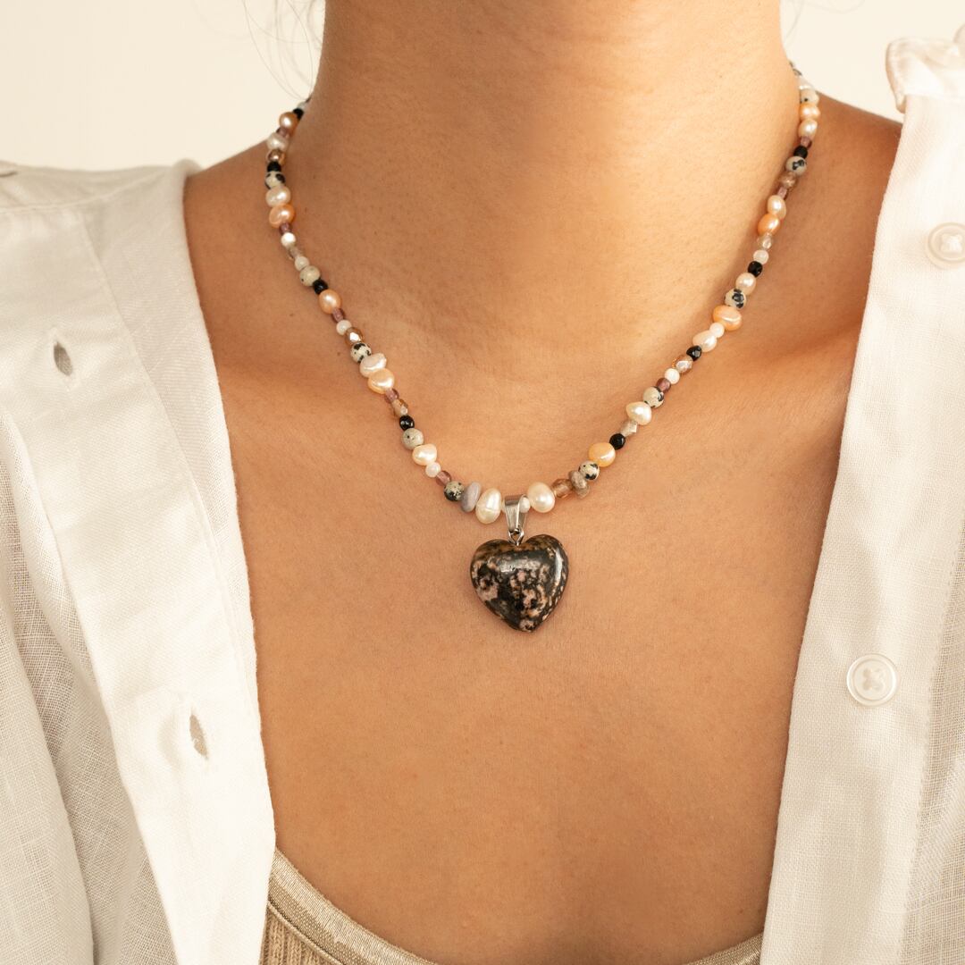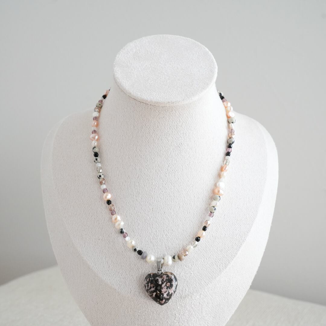 天然石/淡水パール・ハートチャームネックレス(BLACKPINK)