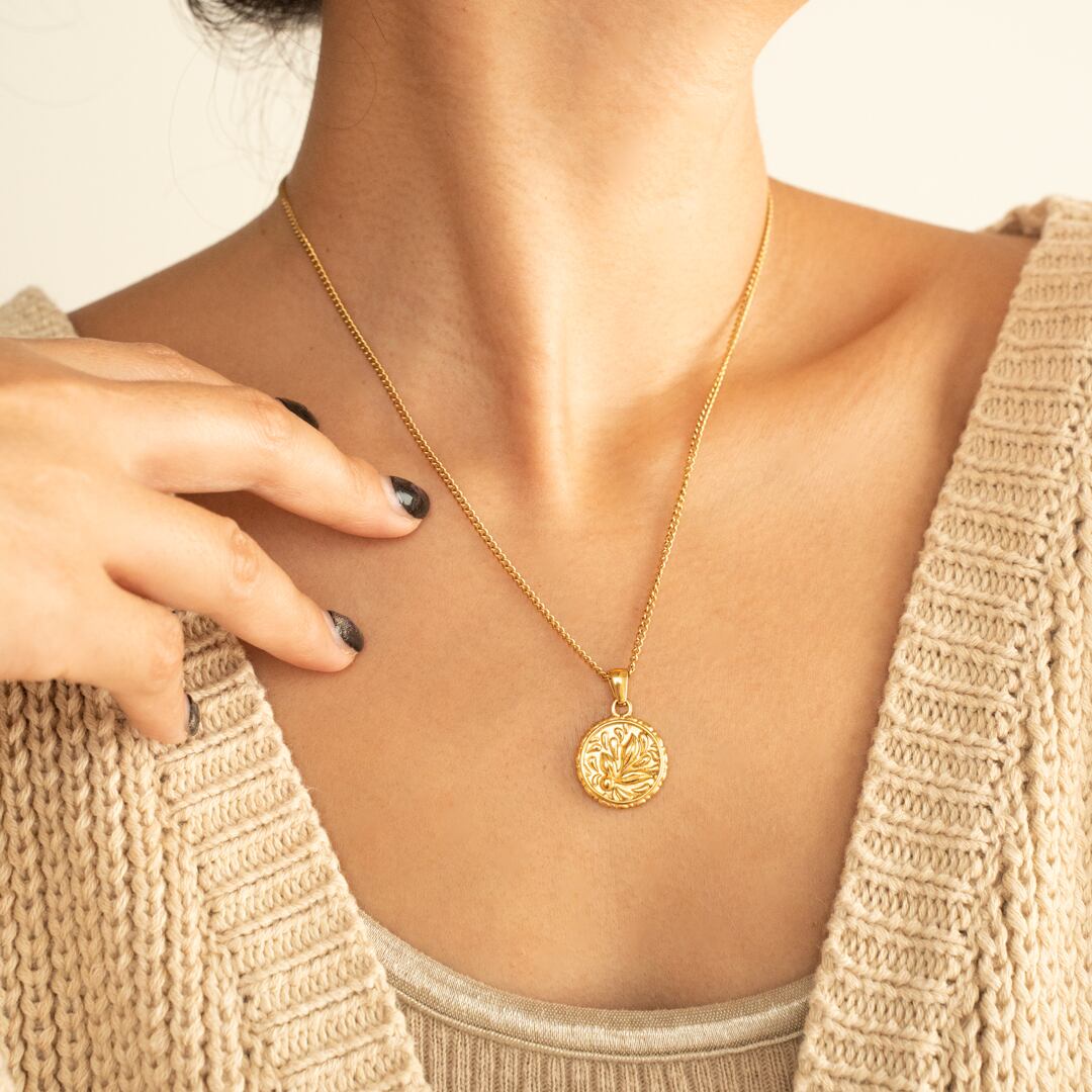 お花が彫られたチャームが可愛いネックレスです⭐︎