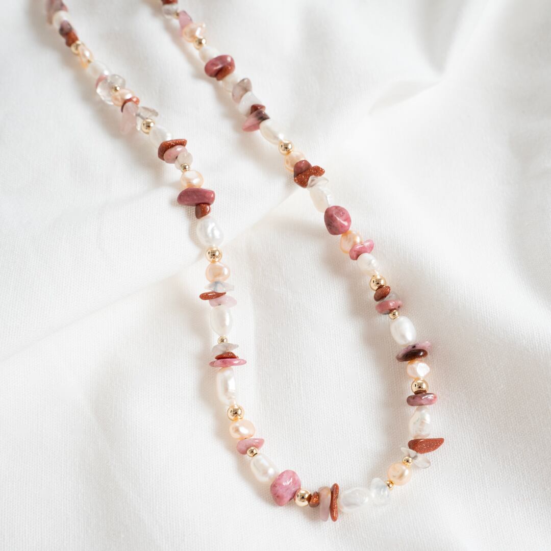 淡水パール・天然石ネックレス(ピンクベージュ)