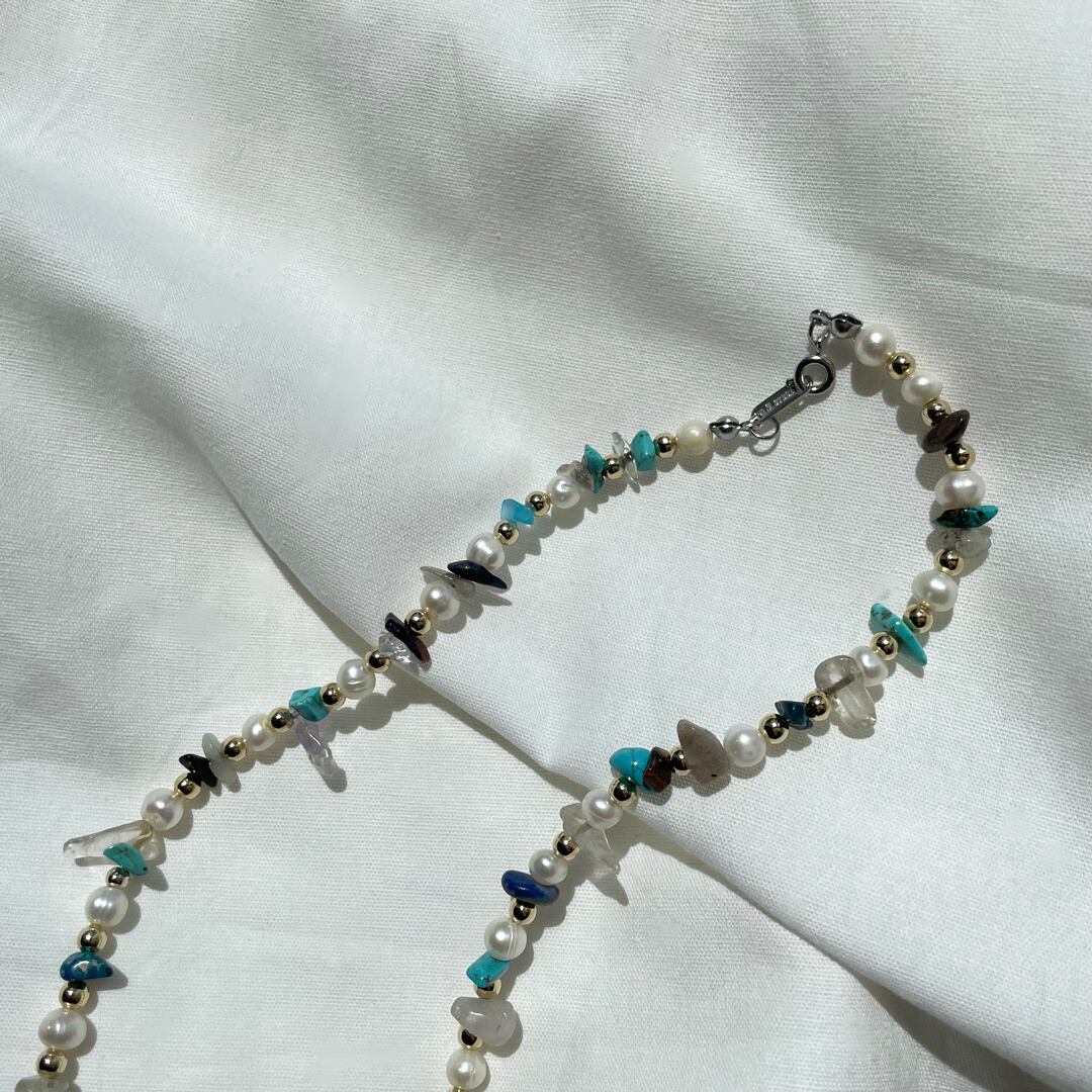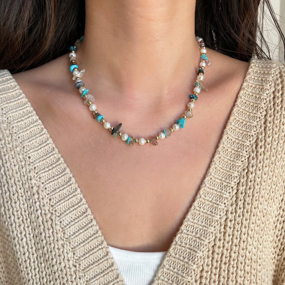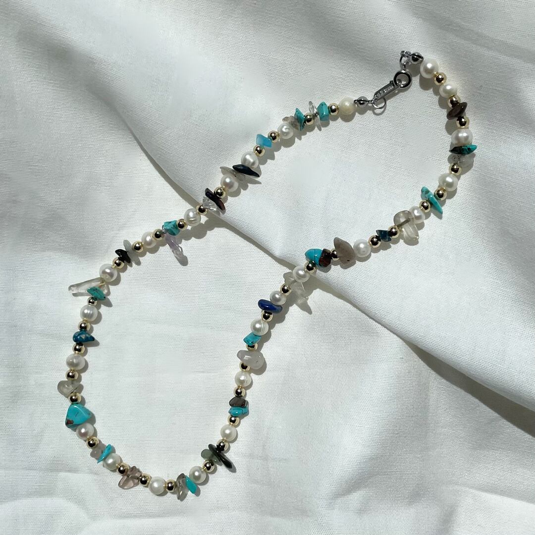 淡水パール・天然石ネックレス(ターコイズブルー)
