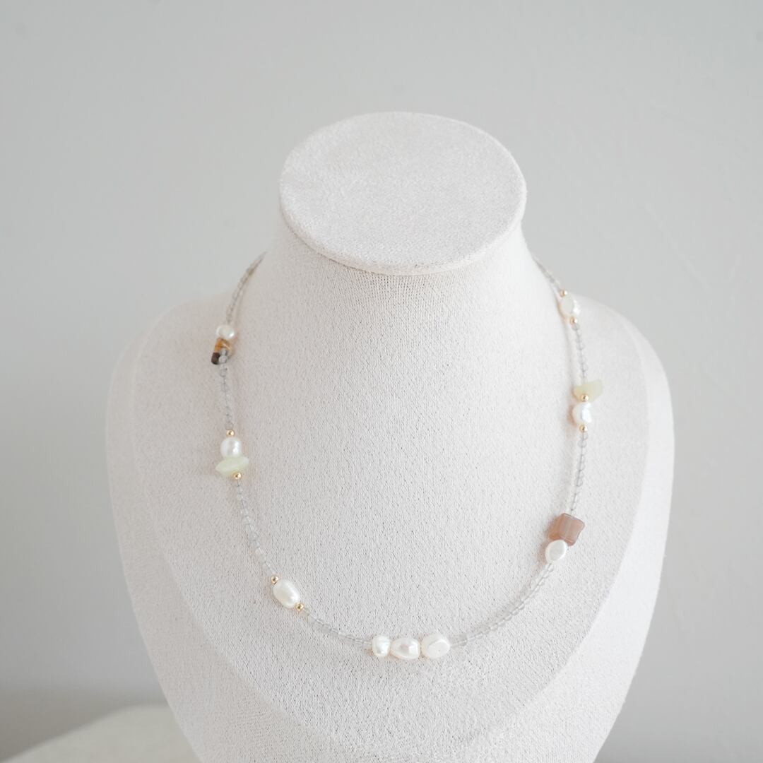 淡水パール・ベージュ天然石ネックレス