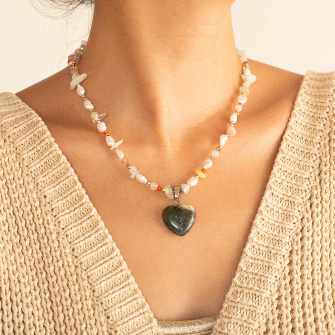 淡水パール・ハート天然石ネックレス