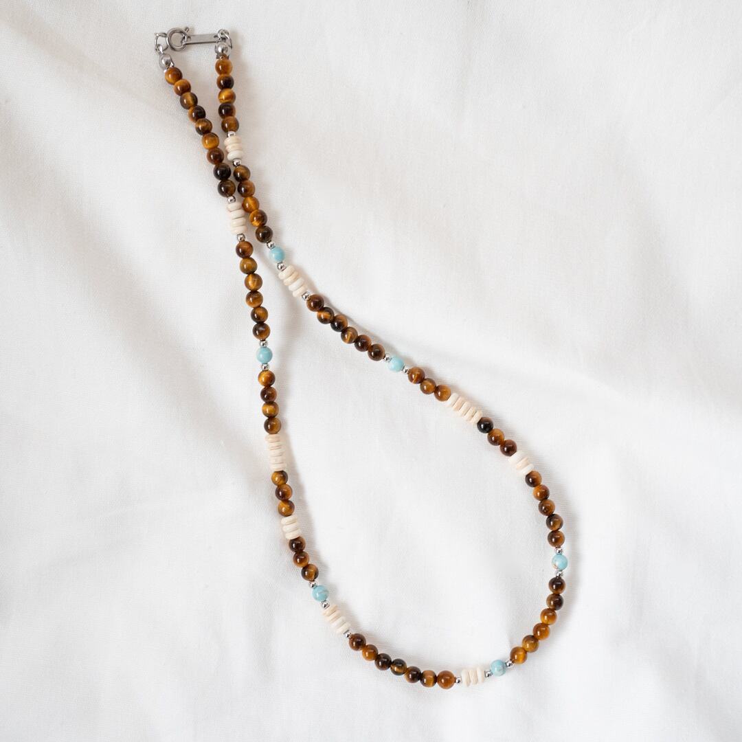 ビーズのサイズ感は4mmですので、単品で付けていただいても存在感がありとても素敵です♪シルバーのメタルビーズも使用していますので、シルバー系のアクセサリーと重ねて付けていただいても可愛いネックレスです⭐︎
